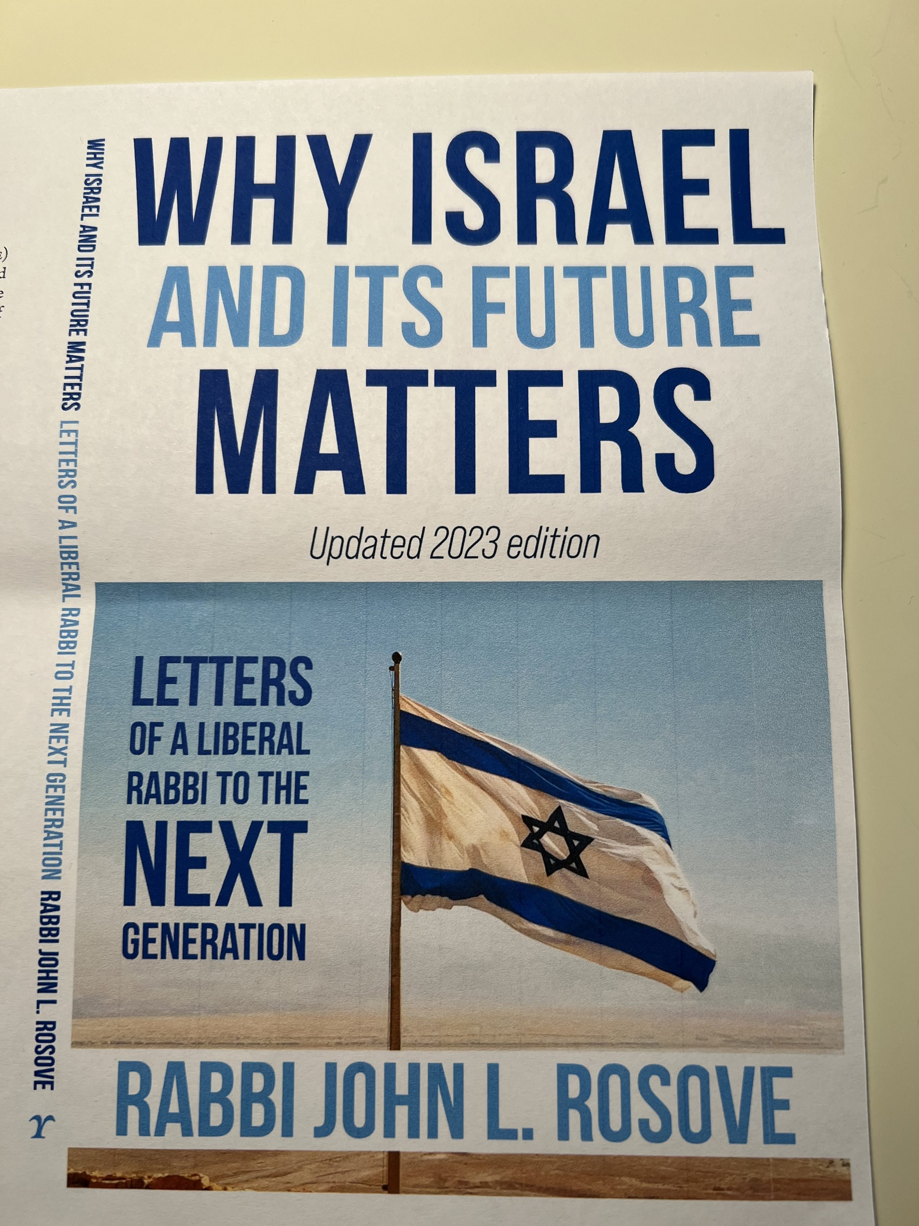 Days after October 7, my publisher at Ben Yehuda Press called to tell me that he wanted to reissue my 2019 book “Why Israel and its Future Matters” with a new cover and tag line “Letters of a Liberal Rabbi to the Next Generation” plus a Foreword that I would write about the Hamas massacre of 1200 babies, children, men, women, and the elderly in southern Israel, Hamas’ kidnapping of 240 hostages, and the Israel-Hamas War.
